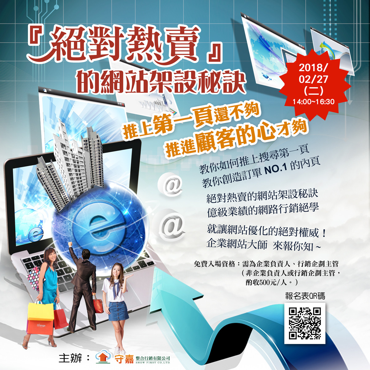 一、需為企業負責人、行銷企劃主管(非企業負責人或行銷企劃主管)酌收500元/人。)